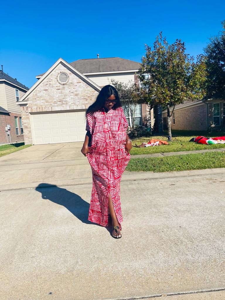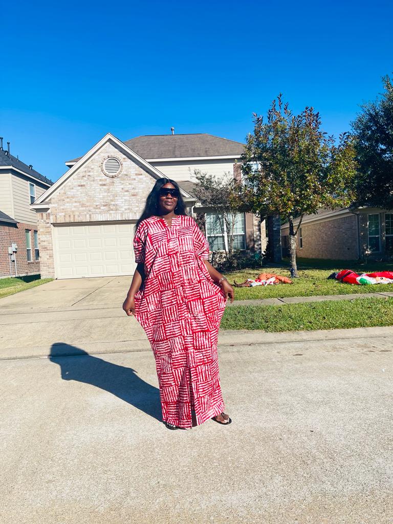 Our kampala rich aunty vibes boubou is one size fit all. Dress comes with a matching headband and scarf. Length is 65 inches and it can be adjusted.