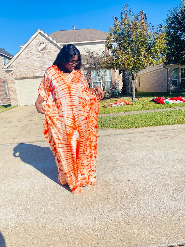 Our luxury silk caftan comes with matching headband and it is suitable for all occasions. The length is 65 inches and it can be adjusted.